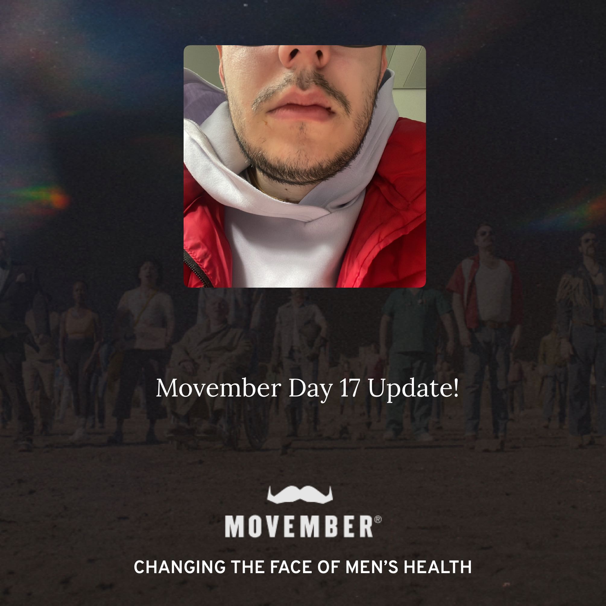 I'm moving 60km this Movember for the 60 men we lose each hour of every day.